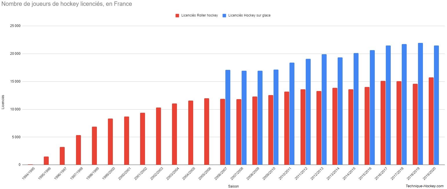 (2) : Les statistiques pour le hockey sur glace ne sont disponibles qu’à partir de la saison 2006/2007, période à laquelle a été créée la FFHG. Auparavant, le hockey sur glace était rattaché à la fédération française des sports de glace, et les joueurs étaient donc noyés au milieu des patineurs, luges, joueurs de curling, etc…
